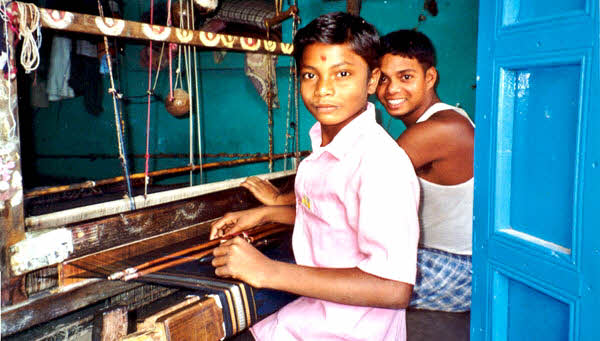 veel kleding (sari's) geweven, meestal in inslagikat. De inslagikat is